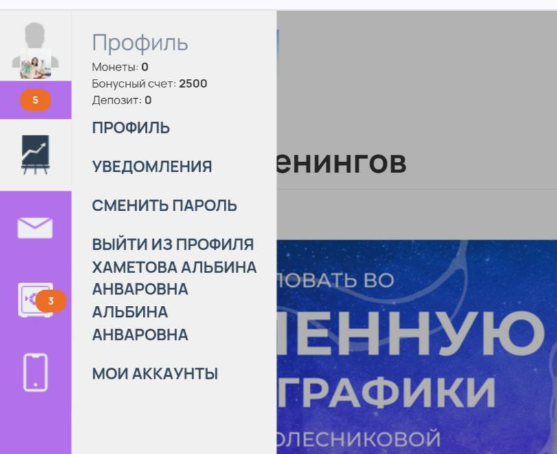 2. Нажмите на фото в верхнем левом углу и вы увидите свой бонусный счёт